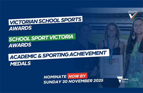 Nominations are now officially open for the Victorian School Sports Awards, the School Sport Victoria Awards, and the prestigious SSV Academic and Sporting Achievement Medals.