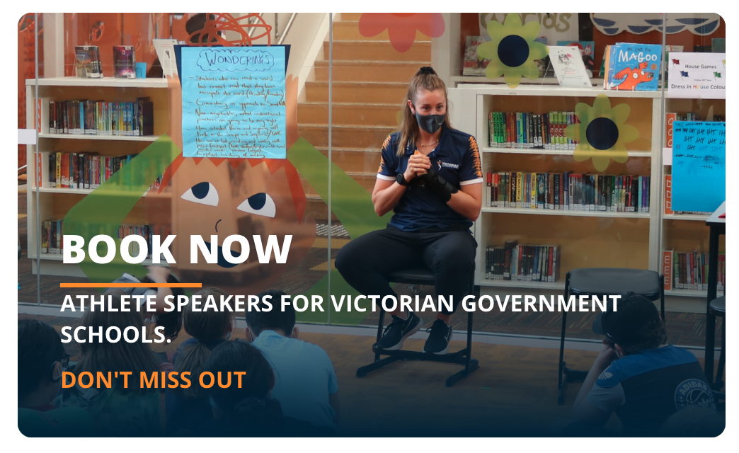 Victorian Government primary and secondary schools can book athlete speakers free of charge, via our 'Be Fit. Be Well' program.